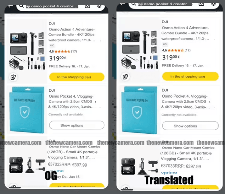 Съобщава се, че спецификациите и графикът за пускане на предстоящата ръчна карданна камера на DJI, серията Osmo Pocket 4, са изтекли. Информацията се появи за кратко на продуктова страница с контейнер в Amazon Германия, маркирана като „официално спонсорирана от DJI“, преди да бъде премахната. Според списъка новата серия е планирана за стартиране през март тази година.
