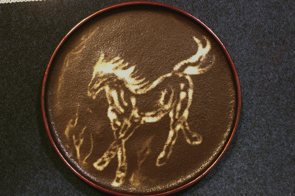 Моделът на галопиращ кон показва изкуството на рисуването на чай в планината Wuyi. [Photo provided to China Daily]