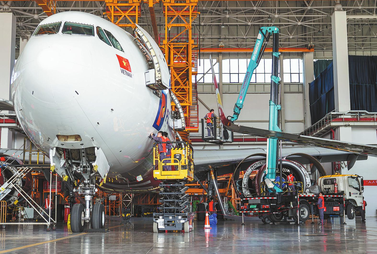 Това, което прави пътуването на този самолет още по-значимо, не е неговият международен нюх, а мястото, където се извършва критичната му поддръжка: пристанището за свободна търговия на Хайнан, където се оформя процъфтяваща екосистема, за да се справи с нуждите от основен ремонт на самолети в света.